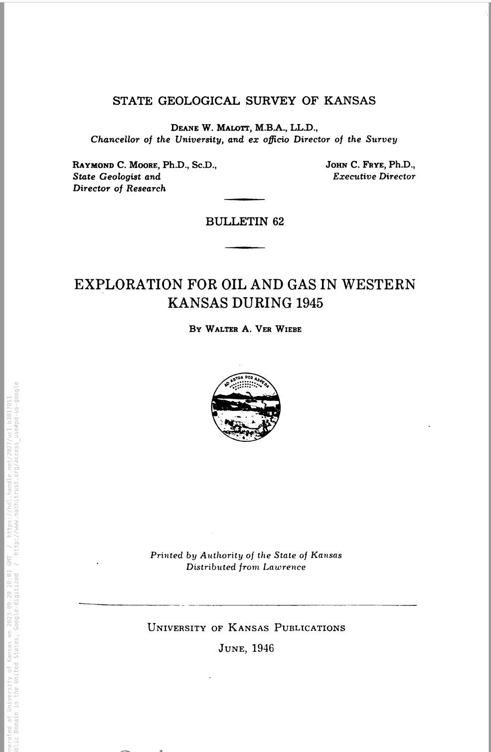 Bulletin 62: Exploration for Oil and Gas in Western Kansas During 1945