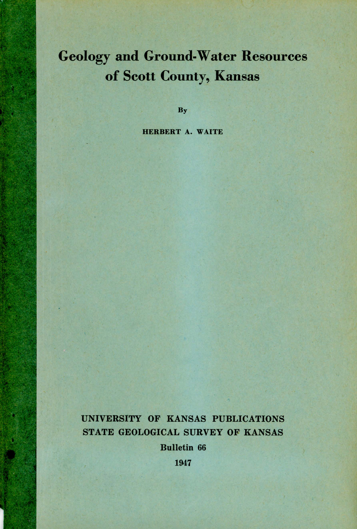 Bulletin 66: Geology and Ground-Water Resources of Scott County, Kansas