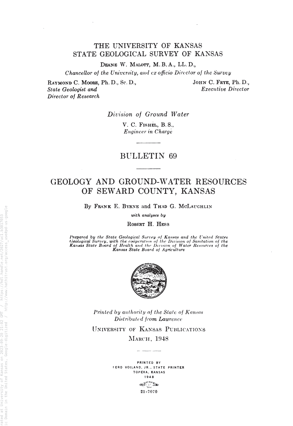 Bulletin 69: Geology and Ground-Water Resources of Seward County, Kansas