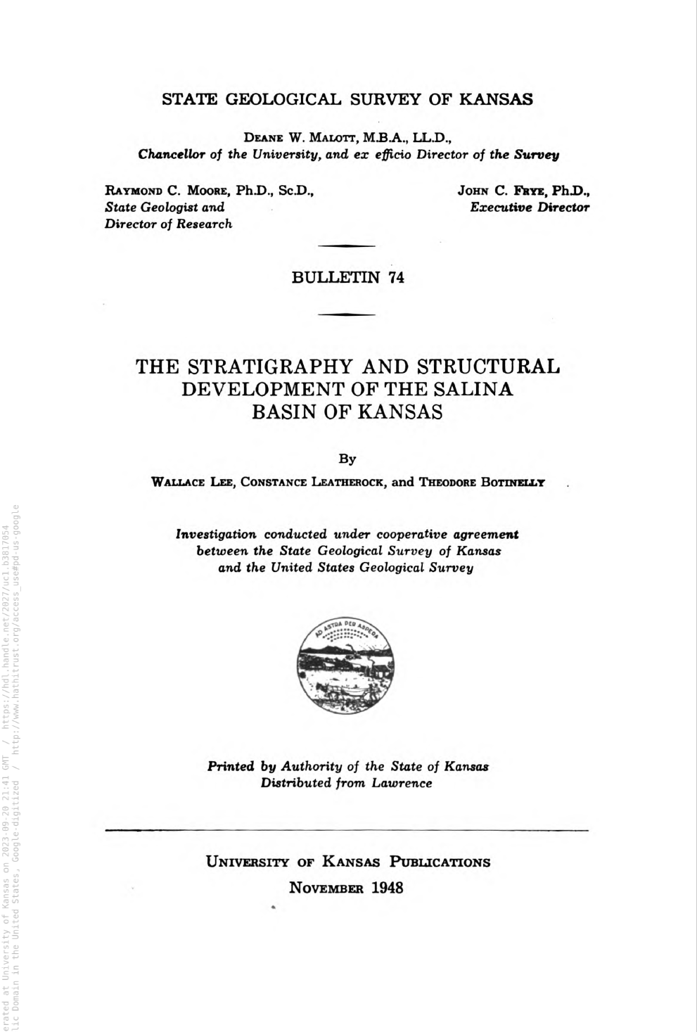 Bulletin 74: The Stratigraphy and Structural Development of the Salina Basin of Kansas