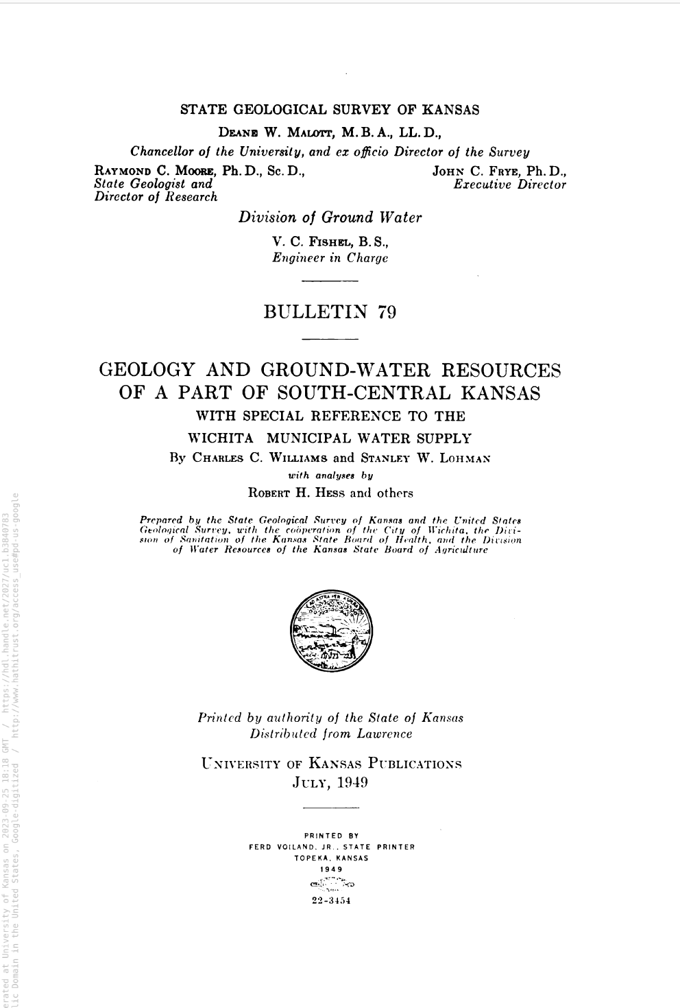 Bulletin 79: Geology and Ground-Water Resources of a Part of South-Central Kansas with Special Reference to the Wichita Municipal Water Supply