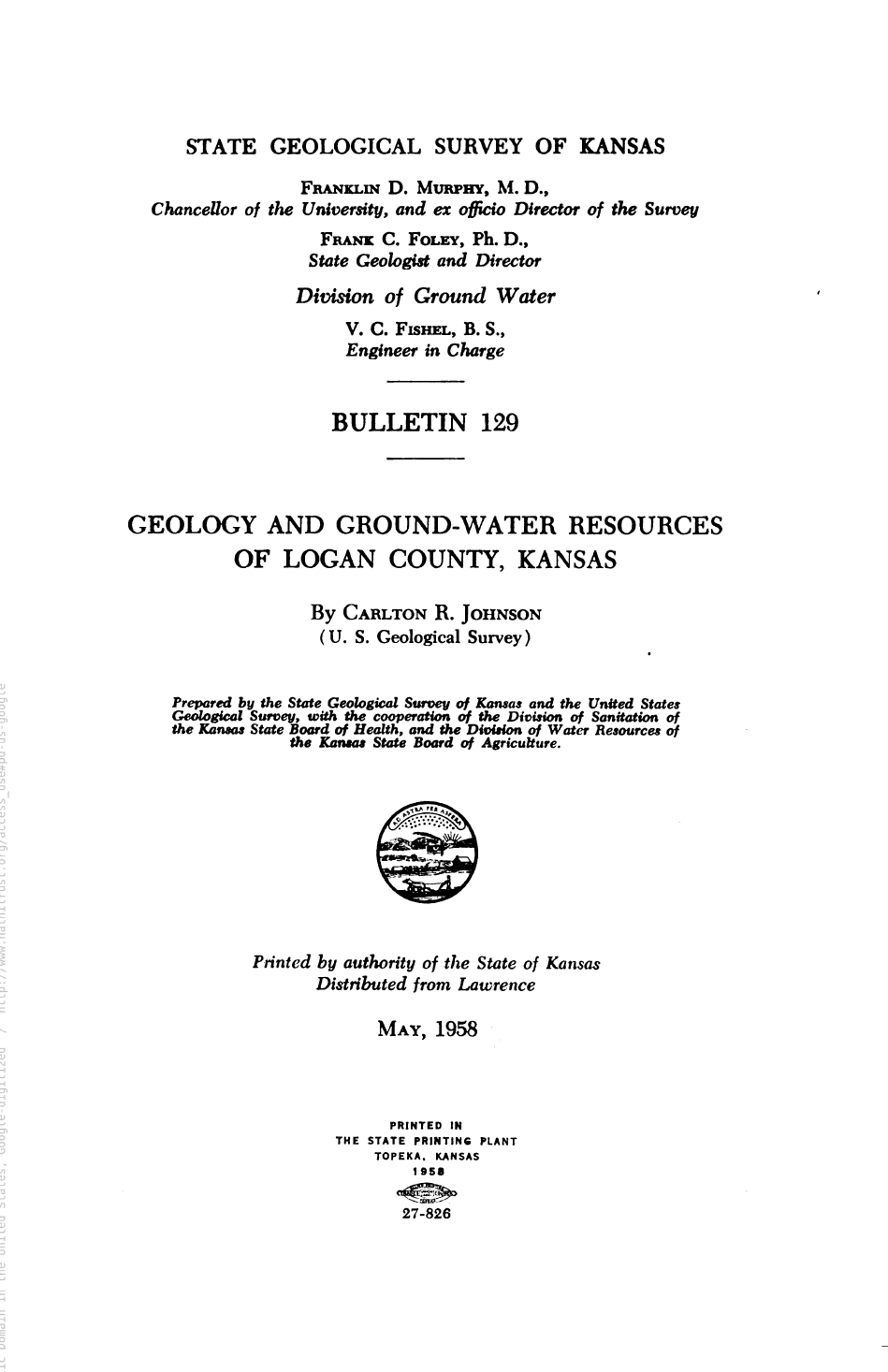 Bulletin 129: Geology and Ground-Water Resources of Logan County, Kansas