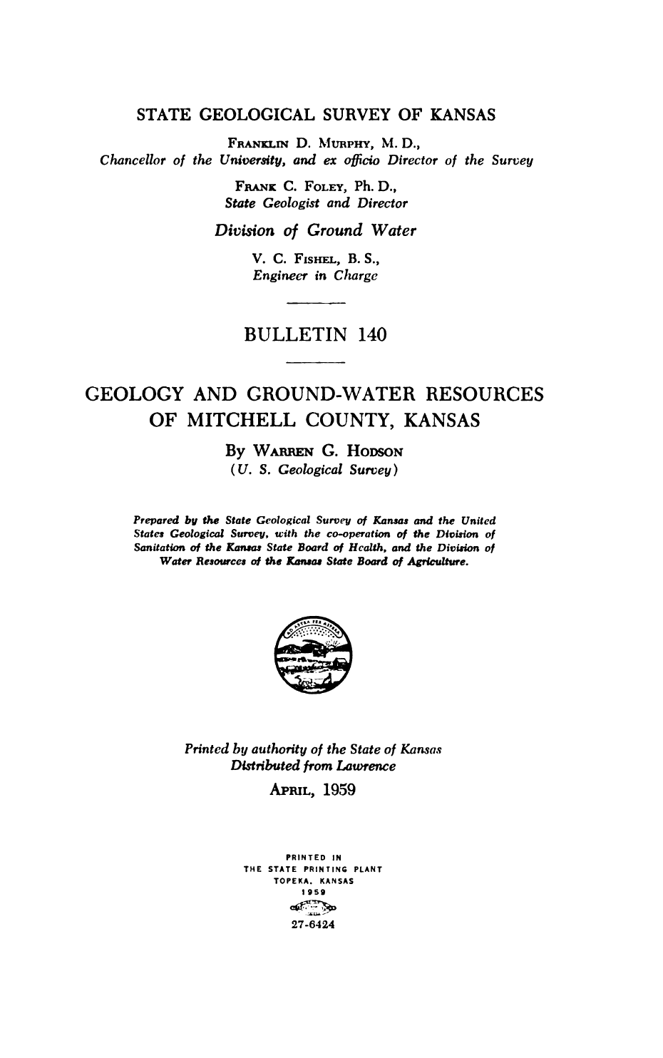 Bulletin 140: Geology and Ground-Water Resources of Mitchell County, Kansas
